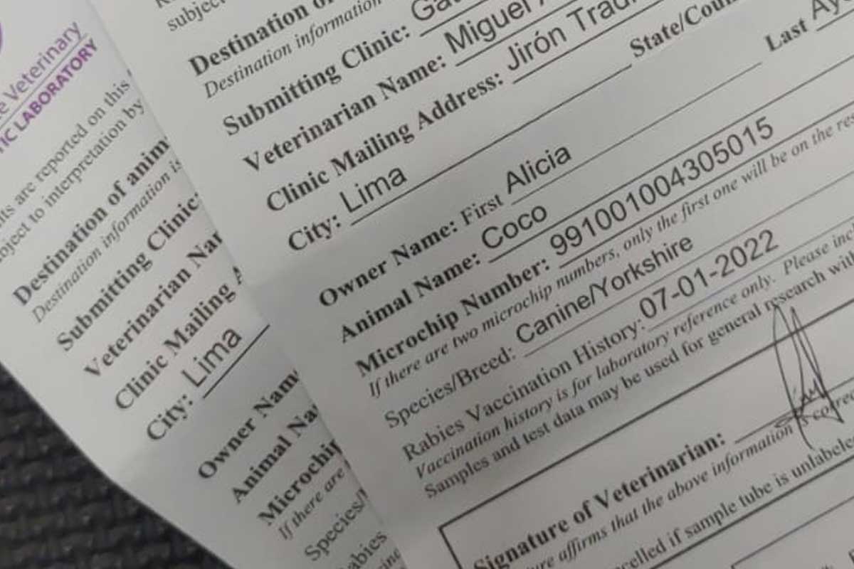 - Certificado de Titulación de Anticuerpos de Rabia (Perros)